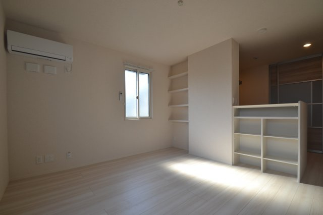 室内は、明るく開放感のある空間設計が特徴です。大きな窓からは自然光がたっぷり差し込み、日中は照明に頼らず快適に過ごせます。居室は無駄のない間取りで家具の配置がしやすく、ベッドやデスク、ソファなどを自由に配置できるため、自分らしいインテリアを楽しめます。フローリングや建具は落ち着いた色味で統一され、長く住んでも飽きの来ないデザインです。また、居室とリビングのつながりも工夫されており、家族や友人との時間と、自分だけのリラックスタイムを両立できる間取り設計です。遮音性や断熱性も考慮されており、外部の騒音や温度の影響を受けにくく、快適な室内環境が保たれます。細部まで丁寧にデザインされた内装は、日常生活の質を自然に高めてくれます。