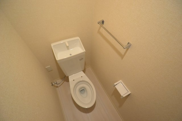トイレはコンパクトながら、圧迫感を感じさせないゆとりのある空間設計です。落ち着いた内装は居室全体の雰囲気に調和し、清潔感が保たれています。収納棚も設けられており、ペーパーや掃除用品を整理しやすく、日常の快適さを支える細やかな工夫が随所にあります。