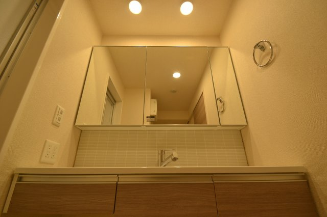 キッチンは、都市型マンションとしての機能性とデザイン性を兼ね備えた空間です。調理スペースは十分に確保され、複数の作業を同時に行いやすい設計で、毎日の料理がスムーズに進みます。収納も充実しており、食器や調理器具、食材を整理しやすく、いつでもすっきりとした状態で使用できます。また、リビングやダイニングとのつながりも意識されており、料理中も家族や来客と会話を楽しめる点が魅力です。照明や作業スペースの配置も工夫されており、調理を快適に行えるだけでなく、料理の時間そのものが楽しくなるような工夫が施されています。デザイン性も高く、清潔感のあるキッチンは、住まい全体の雰囲気にも調和しています。