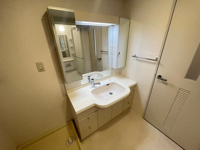 洗面スペースは身支度や家事動線を考慮した実用的な設計。洗面台周りには収納が備えられており、タオルや日用品、身だしなみ用品をまとめて管理できます。朝の忙しい時間帯でも使いやすく、家族が並んで使う際にもストレスを感じにくい空間です。