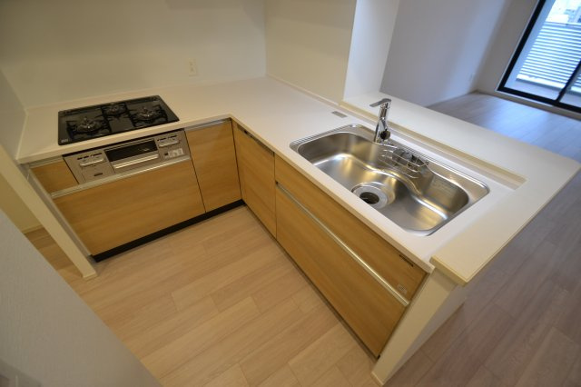 機能性とデザイン性を兼ね備えたキッチンは、調理動線に配慮した使いやすいレイアウトが魅力です。作業スペースをしっかり確保し、収納力の高いキャビネットにより調理器具や食器もすっきり整理可能。落ち着いた色調と上質な素材感が、住空間全体に洗練された印象を与えます。