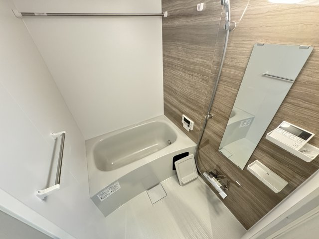 キッチンはシンプルで効率的な動線を確保しつつ、収納力も十分に備えられており、日々の調理や片付けがスムーズに行えます。コンパクトながら作業スペースが確保されており、単身やDINKSの生活に最適です。バスルームは清潔感のあるデザインで、ゆったりと入浴できる空間を確保。日々の疲れをリフレッシュするための落ち着いた雰囲気が魅力です。洗面スペースは身支度のしやすさを重視し、収納棚や鏡などの機能が整えられています。小物や日用品を整理できるため、すっきりとした印象を保ちながら快適に使用できます。トイレは独立しており、清潔感のある仕様でプライバシーも確保。全体として、水廻りは限られた空間の中でも使い勝手と快適性を高いレベルで両立させた設えとなっています。